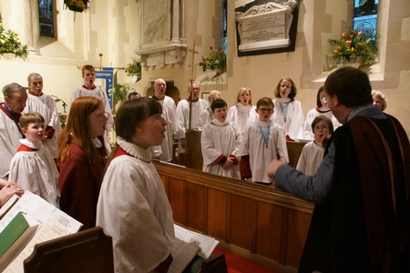 The Choir now has its own website with further information, including a detailed schedule of music to be sung, see https://music.stgilesfarnborough.org.uk/