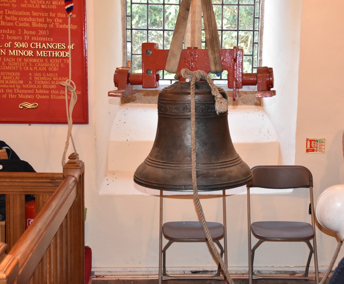 Caroline Stockmann of Sevenoaks, who rang bell number 1, kindly and generously contributed to the augmentation and her name, as well as her mother’s, is on the new tenor bell along with the names of other former parishioners. Caroline’s husband, Michael, who rang bell number 3 helped with the physical . augmentation works as did Lesley Barclay.