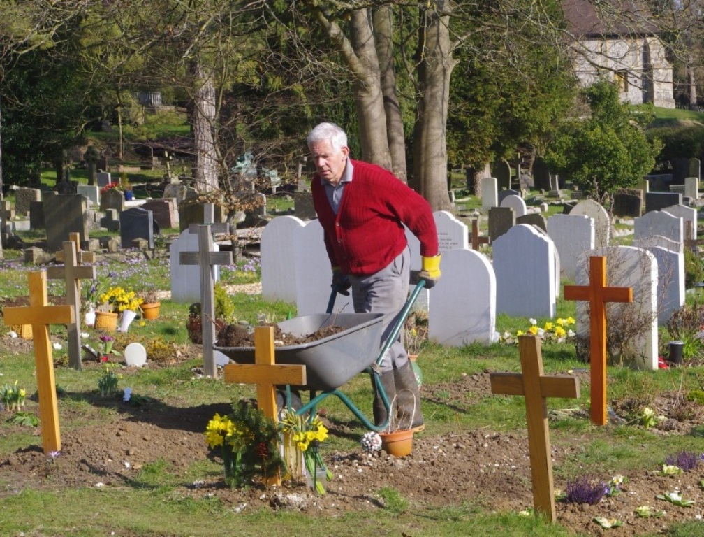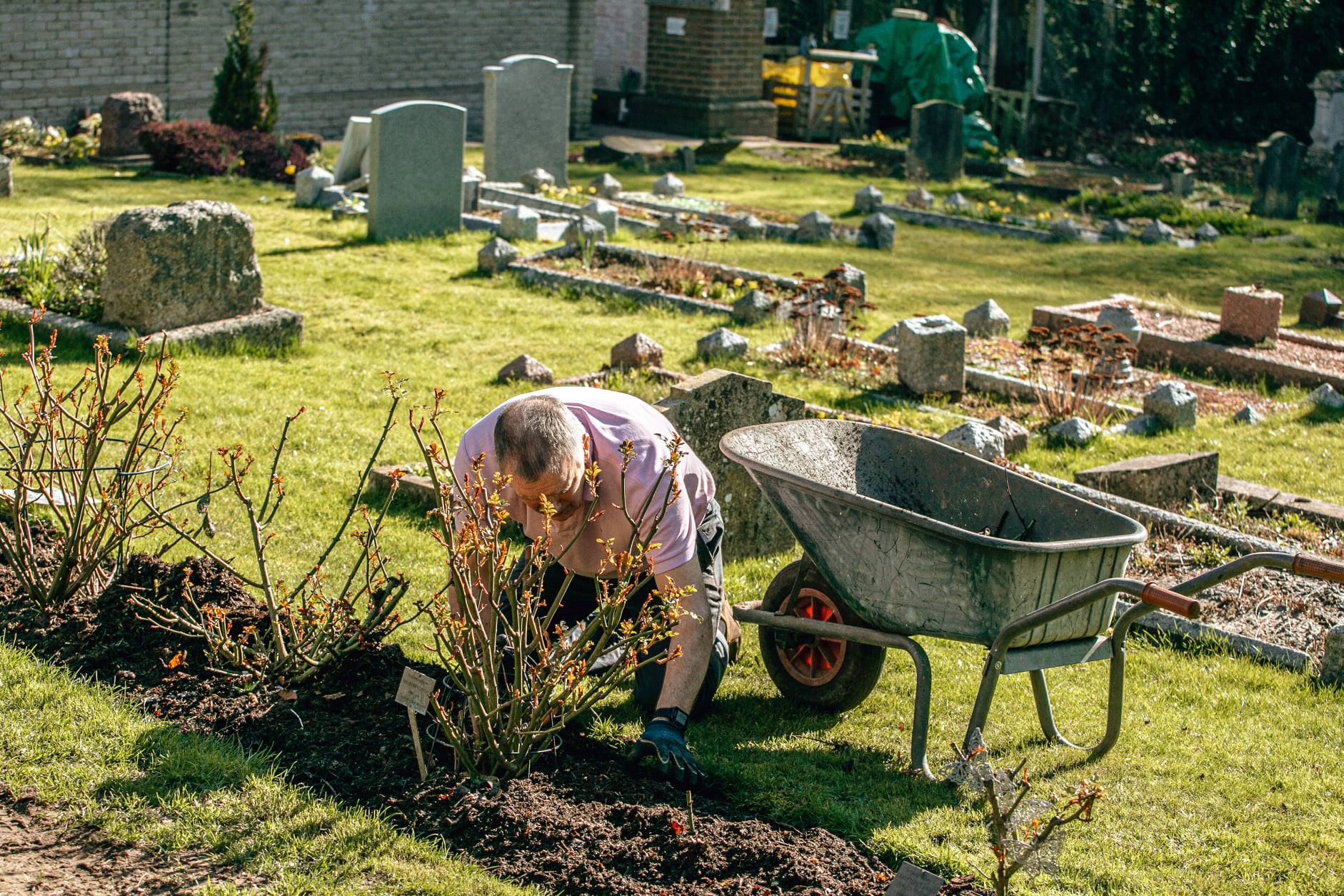 The Church employs a contractor to cut the grass and to remove non-compostable rubbish for nine months of the year, but all other regular tasks except the digging of graves are carried out all year round by volunteers from within the church community - the "Churchyard Team". Because they meet on Tuesdays, they are also referred to as the "Tuesday Team".