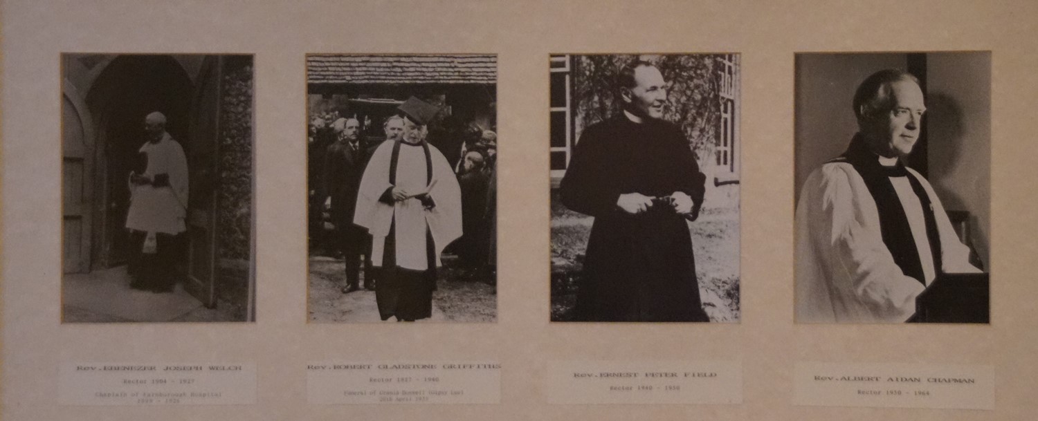 The first Rector of Farnborough Parish, George William Durrock Hignston (1876), was succeeded in 1885 by Frederick Jessop Kelly, and in 1898 by Groves Lombard.
