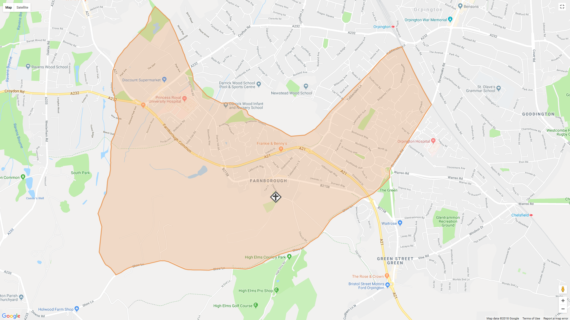 This is a modern map of Farnborough Parish, which maintains the boundary established in 1938 with the removal of Green Street Green..