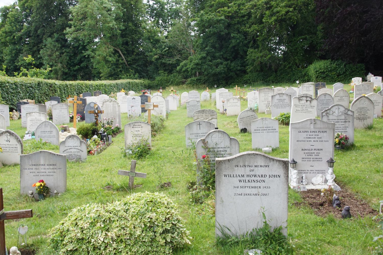 The original area plus its 1854 extension are known today as the 'Old Graveyard'. It is thought that it ceased to be used routinely for new graves from 1887, but further burials in existing graves continued until the Second World War and, very occasionally, even today.At that time the land that today forms the main graveyard was still part of the High Elms estate, owned by the Lubbock family