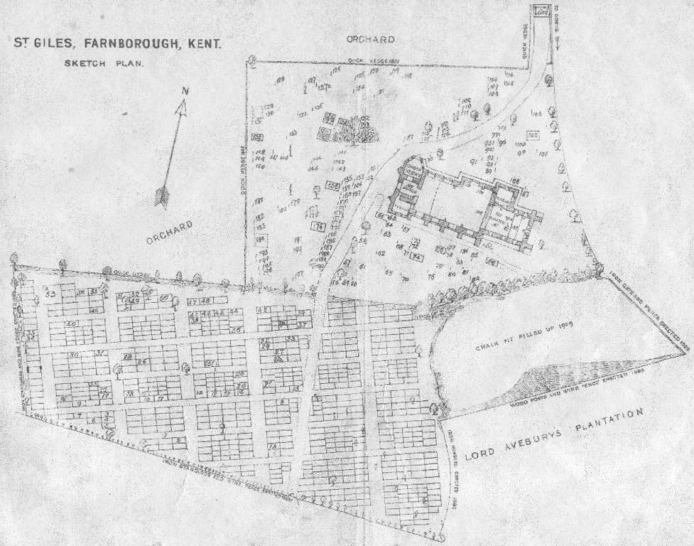 We do not have any details of where burials in the old graveyard took place, apart from those on a map published in 1919, and archived by the Kent Archaeological Society These were integrated into the St. Giles records during 2012.