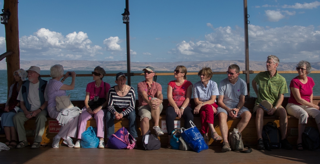 We had three communion services in the course of the ten days, the first being at Tabgha, believed to have been the site where Jesus fed the five thousand. Everywhere we went on our pilgrimage others were going by coach too. Every holy site and church was managed by a Christian denomination, often Franciscan but also Orthodox, Catholic or Protestant. In the grounds of each site there were groups of seats often around a simple table where the parties of pilgrims and their leader could talk and worship together. This meant that while we were listening to Alison or Sayeed we could hear on all sides devotions and faint singing in many other tongues. At Tabgha on that Saturday morning we were able to celebrate our communion together away from the sun quietly under trees on the shore of the Sea of Galilee. One gets the impression the Feeding of the Thousands at the time was also very pleasant (“There was plenty of grass in that place”. John 6 v 10), but rather more fraught, with the disciples asking Jesus for advice and then organising loaves and fishes and the clearing-up afterwards.