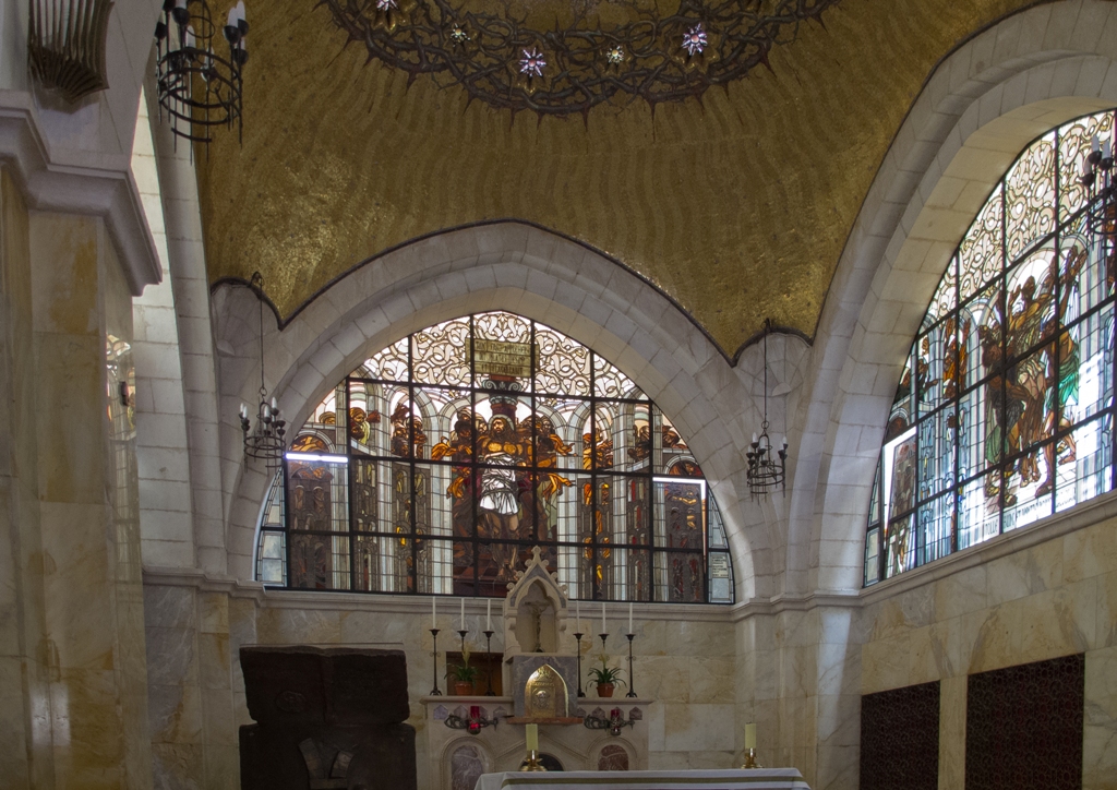 After lunch we walked to Mary’s Well, quite a long walk to the only freshwater spring in Nazareth. As our informative guide Sayeed said – trust men to site a village in a defensible position, never mind about the distance the women have to trudge to fetch fresh water. After this we visited The Basilica of the Annunciation over a first century cave where Mary is thought to have lived. Then on to Cana, the place of the first miracle at the wedding.